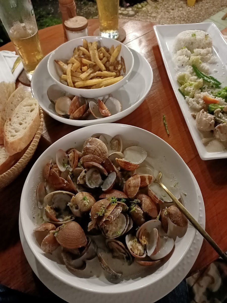 Gorgeous little French bistro/ cantina in the southern central Ubud region. Great staff and lovely food. We ordered a lovely bottle of white wine that is a one where the grapes are grown in South Australia then bottled and blended in Indonesia, with that came a lovely set of hors d'oeuvres that were delicious. My hotpot chicken and vegetables in a creamy sauce served with rice was scrumptious and my friend had the steak and frites.